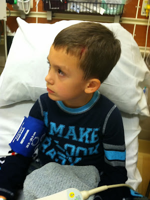 If I don't tuck Aidan in right away at bedtime he comes looking for me. As I was uploading pictures to this blog last night I heard him coming only I heard a big smack instead and instantly scooped him up. We landed in the ER last night where the dr first said stapling it would be better than stitches because the hair gets in the way and then he wasn't sure if he'd glue it because his hair wasn't long enough to twirl on each side to glue it down over it. We waited 45 min for the lidocaine cotton ball to do it's work and the dr came back in to clean it up and shoot it up some more and then he decided to stitch it. All cleaned up and you can't even tell! Our boy is now on his 2nd set of stitches in his 6 short years. We took him to Krispy Kreme at 11pm for being so brave. So my grand plans for completing things off my to do list were squashed. Very little sleep and I had a brunch/wine tasting day planned with friends today so Rick was on his own with the kids which meant taking Abby to her baptism class this afternoon.